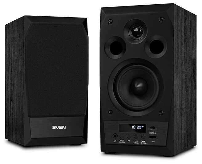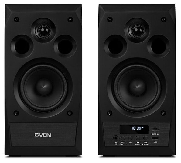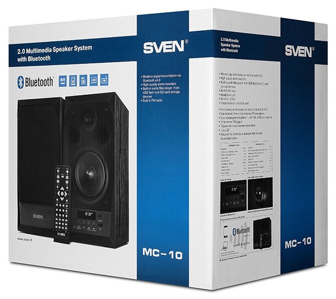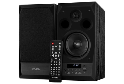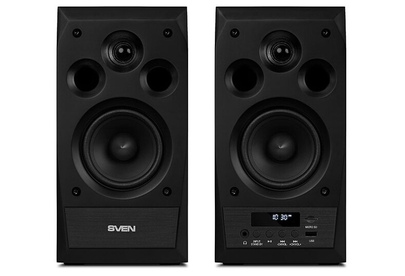 Акустическая система, выходная мощность (RMS), Вт 50 (2 х25), частотный диапазон, Гц 45 – 27 000, диаметр ВЧ-динамиков, мм O 25, диаметр НЧ-динамиков, мм O 100, напряжение питания ~220 В, 50 Гц, материал корпуса - дерево (MDF), беспроводная передача сигнала по Bluetooth, высококачественные купольные ВЧ-динамики, воспроизведение музыки с USB flash и SD card памяти, встроенное FM-радио, пульт ДУ, размеры изделия, мм - 145 х285 х218.
