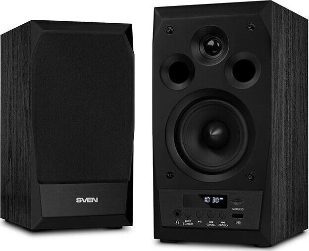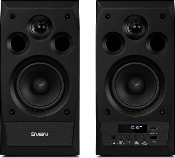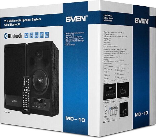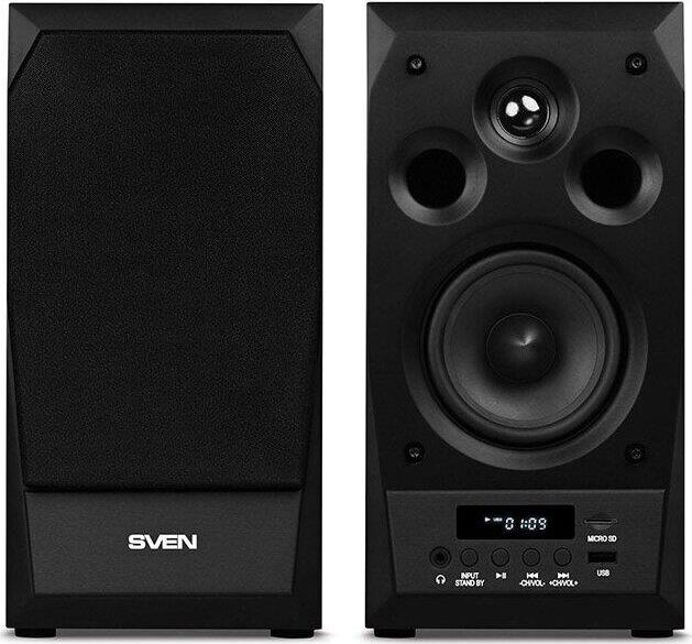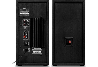 Акустическая система, выходная мощность (RMS), Вт 50 (2 х25), частотный диапазон, Гц 45 – 27 000, диаметр ВЧ-динамиков, мм O 25, диаметр НЧ-динамиков, мм O 100, напряжение питания ~220 В, 50 Гц, материал корпуса - дерево (MDF), беспроводная передача сигнала по Bluetooth, высококачественные купольные ВЧ-динамики, воспроизведение музыки с USB flash и SD card памяти, встроенное FM-радио, пульт ДУ, размеры изделия, мм - 145 х285 х218.