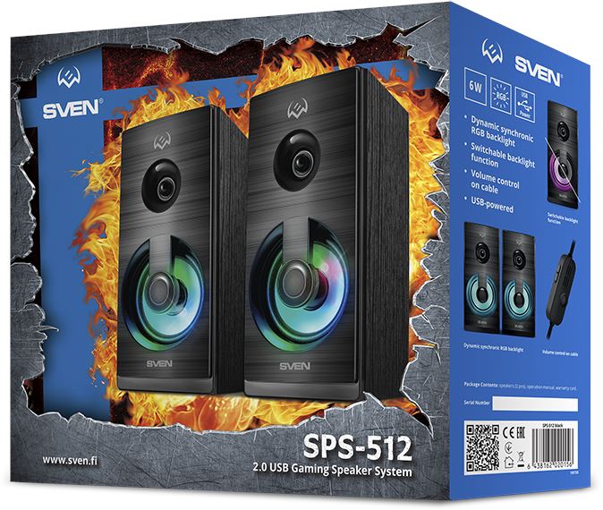 Акустическая система, 2.0, Выходная мощность (RMS), Вт - 6 (2 х 3), частотный диапазон, Гц - 80 – 20 000, размеры динамиков, мм - O 75, напряжение питания USB / DC 5V, номинальный ток потребления, А - 0,04, материал корпуса - дерево (MDF), Динамическая синхронная RGB подсветка, регулировка уровня громкости на кабеле, питание через порт USB, габаритные размеры изделия (Ш хВ хГ), мм - 90 х195 х118.