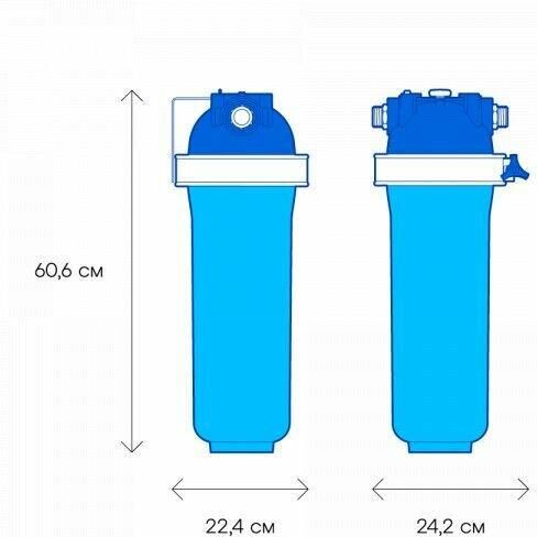 Предварительная и комплексная очистка холодной воды во всей квартире или загородном доме. Габариты Д/Ш/В 247/228/615мм. Вес 3,87кг. Преимущества: • Армированный пластик европейского производства. • Легкая замена модуля без специальных инструментов. • Металлический кронштейн. • Защита от гидроударов. • Выдерживает давление в 30 бар* • Удобное быстроразъёмное подключение — «американка». Наружная резьба 3/4” • Система сброса давления.