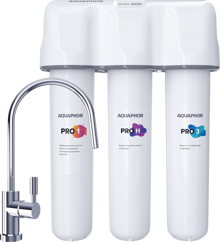 Умягчающая система Baby Н Pro включает инновационный модуль предочистки и сорбции 2 в 1, ионообменный блок для снижения скорости образования накипи и дополнительный сорбционный модуль для глубокой очистки воды от техногенных загрязнений. Скорость фильтрации 2 л/мин. Ресурс 8000 л. Система удаляет активный хлор, тяжелые металлы, пестициды, нефтепродукты, а также антибиотики, гормоны, радионуклиды и свободные радикалы, даже если вода ржавая или мутная. Система была протестирована на способность удалять остаточные количества фармпрепаратов на примере антибиотика Левомицетина и стероидного гормона Эстрона с результатом фильтрации 99,9% и 99.8% соответственно.