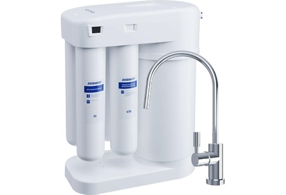 Удаляет все вредные примеси из водопроводной воды. Полностью устраняет жесткость воды – причину накипи. Обогащает воду магнием и кальцием. Эффективен даже при низком давлении в водопроводе. Производ-ть: 7,8 л/час. Габариты рабочего блока: 37,1х42,0х19,0 см.