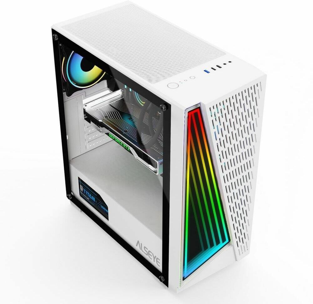 Корпус ALSEYE X3-W: стильный и функциональный Корпус ALSEYE X3-W выполнен в стильном белом цвете, который легко впишется в любой интерьер. Закаленное стекло и металлическая сетка придают корпусу современный и элегантный вид. Корпус имеет компактные размеры (460 мм в высоту, 380 мм в глубину и 200 мм в ширину), что позволяет разместить его даже в небольших помещениях. Максимальная высота процессорного кулера составляет 165 мм, а максимальная длина видеокарты – 320 мм.