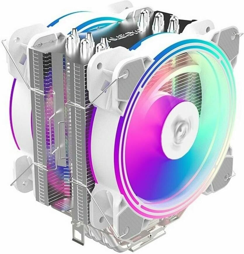 Количество вентиляторов: 2. Размер вентилятора: 120. Материал радиатора: алюминий+медь. Тип поставки: Ret. Цвет подсветки: многоцветная. Высота кулера: 154. Ширина кулера: 106. Длина кулера: 123. Макс, рассеиваемая мощность (TDP, Вт): 200. Направление выдува: параллельно МП. Срок службы вентилятора: 40000. Материал основания прилегающего к охлаждаемому устройству: алюминий/медь. Материал тепловых трубок: медь. Питание вентилятора от материнской платы: 4-pin. Потребляемое напряжение вентилятора: 12. Термопаста в комплекте: есть. Разборное крепление: да. Габариты упаковки (ед) ДхШхВ: 0.141x0.12x0.22. Вес упаковки (ед): 1.4. Тип подсветки: RGB. ЖК дисплей: нет. Максимальное статическое давление: 7.7. Тип конструкции: башенный. Цвет вентилятора: белый. Гарантия: 12 мес.. Скорость вращения вентилятора: 800 - 2000 об/мин. Тип подшипника: Hydraulic Bearing. Тепловые трубки: 6 шт с диаметром по 6 мм. Воздушный поток вентилятора: 53.5 cfm. Уровень шума вентилятора: 11.6 - 35.3 дБ. Цвет товара: белый. Назначение кулера