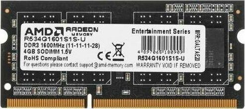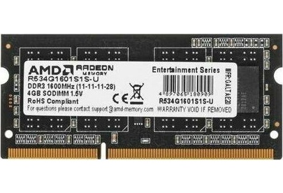 AMD Оперативная память R534G1601S1S-UG DDR3 - 1x 4ГБ 1600МГц, для ноутбуков (SO-DIMM), Ret