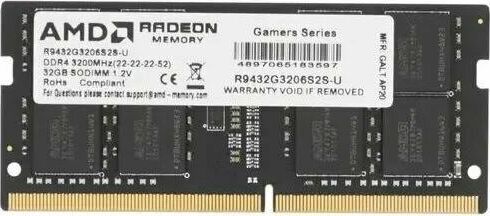 AMD Оперативная память R9 R9432G3206S2S-U DDR4 - 1x 32ГБ 3200МГц, для ноутбуков (SO-DIMM), Ret
