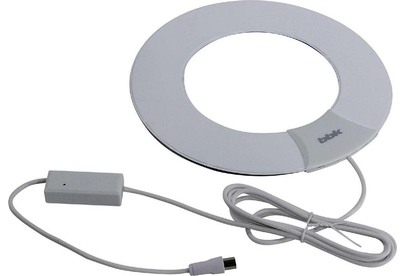 Активная комнатная антенна, для цифровых телевизионных сигналов DVB-T, DVB-T2, принимаемый диапазон: VHF, UHF, Коэффициент усиления до 30дБ, источник питания - коаксиальный кабель или адаптер питания
