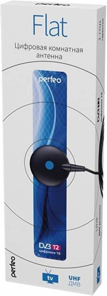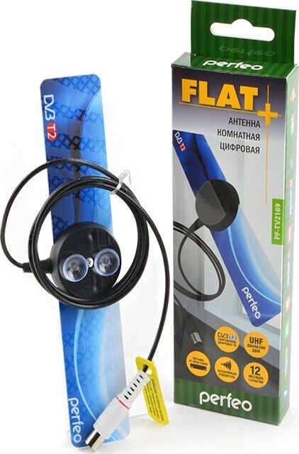 Антенна телевизионная комнатная PERFEO FLAT+ (BAS-5111) DVB-T2 активная, встр. усилитель