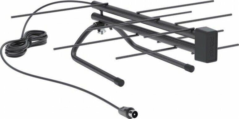 Телевизионная комнатная антенна, активная, для приема аналогового и цифрового телевидения, коэффициент усиления, макс., дБи, 21-69 канал: 17, волновое сопротивление, Ом: 75, питание осуществляется напрямую от антенного разъема цифрового приемника (ресивера), напряжение питания, В: 5, размеры в сборе, мм: 270х350х107.