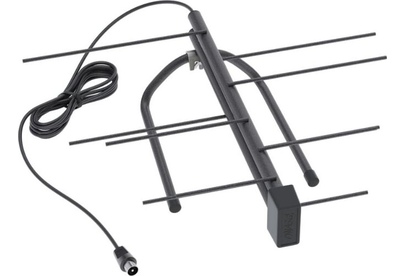 Телевизионная комнатная антенна, пассивная, для приема аналогового и цифрового телевидения, коэффициент усиления, макс., дБи, 21-69 канал: 6, волновое сопротивление, Ом: 75, расстояние до телепередатчика, не более, км: 5, размеры в сборе, мм: 270х350х107.