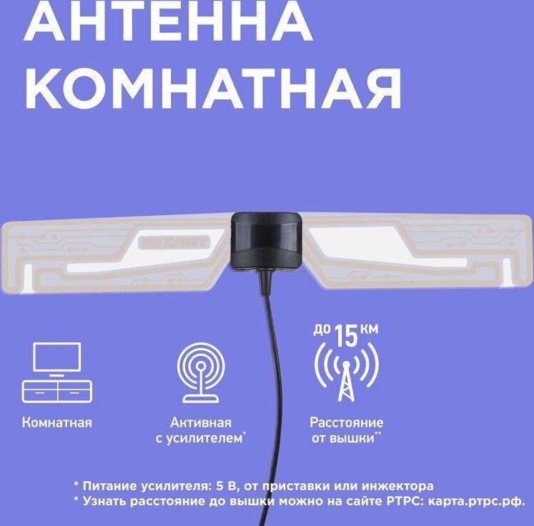REXANT АНТЕННА КОМНАТНАЯ «АКТИВНАЯ» С USB ПИТАНИЕМ, ДЛЯ ЦИФРОВОГО ТЕЛЕВИДЕНИЯ DVB-T2, AG-707
