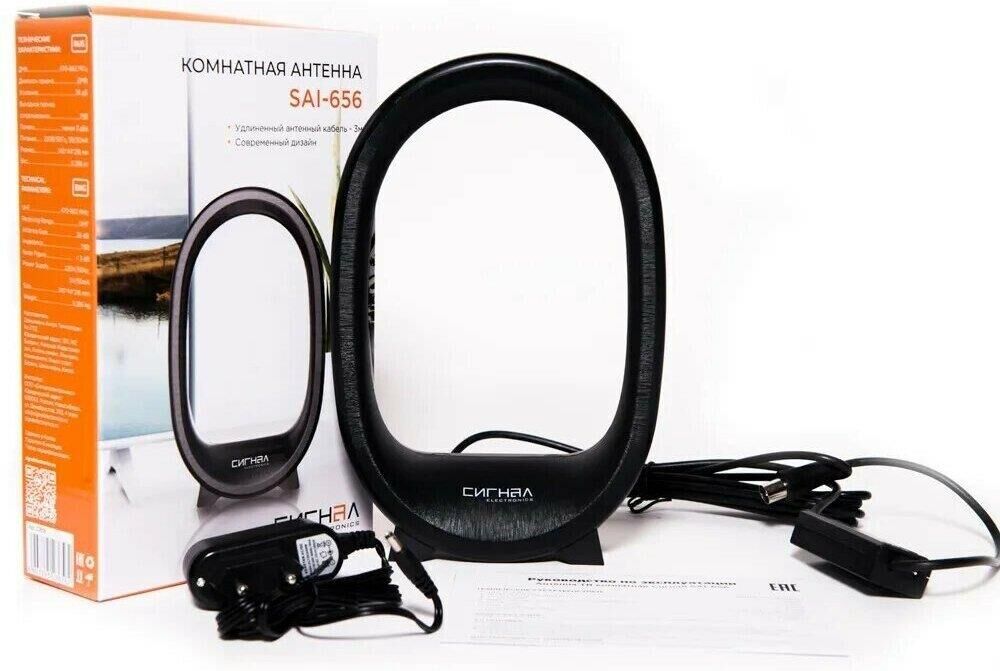 Антенна телевизионная комнатная СИГНАЛ SAI-656 DVB-T2 и ДМВ активная