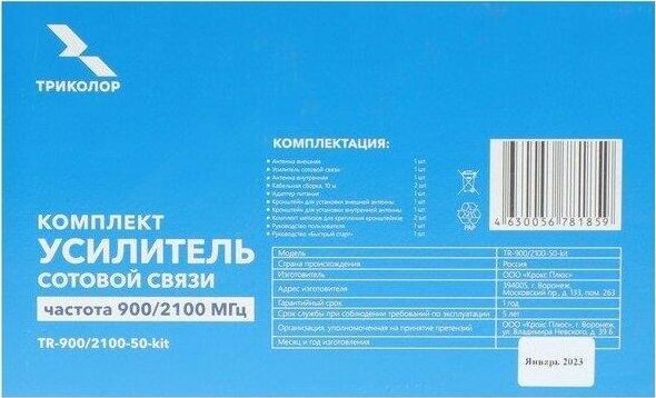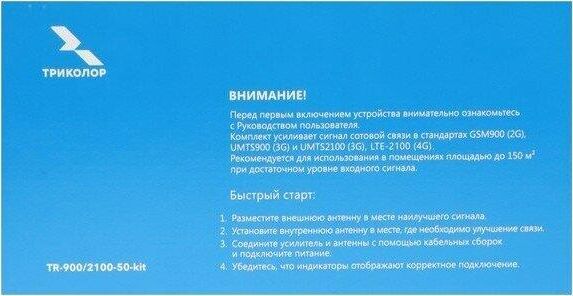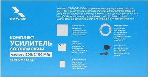 Антенна телевизионная комнатная ТРИКОЛОР Усилитель сигнала TR-900/2100-50-kit 20м двухдиапазонная белый (046/91/00052372)