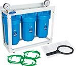 Тройная система корпусов Aquafilter 10 ВВ на стеллаже HHBB10B 565 используется для очистки воды в местах ее повышенного потребления. Три корпуса из полипропилена размещены на металлическом стеллаже. В зависимости от степени загрязнения воды можно подбирать различные картриджи размером 10 ВВ. Кроме того, система корпусов комплектуется датчиками давления и воздушными клапанами для выпуска лишнего воздуха после замены картриджа. Преимущества: Система для присоединения к трубопроводу; Металлический стеллаж с кронштейном; Два манометра (на входе и выходе воды в системы); Воздушные клапаны Aquafilter HHBB10B. 565 позволяют выпустить скопившийся воздух в фильтре после замены картриджей; Система основана на 10" корпусах Big Blue синего цвета (предохраняют картриджи от развития процесса фотосинтеза, в случае если фильтр установлен в солнечном месте); Корпусы имеют инновационный тип стакана (днище более округлено), что в значительной степени увеличивает стойкость на разрыв корпуса; Можно установить картриджи любого наз