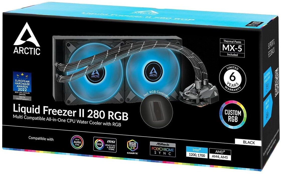 **Жидкостная система охлаждения Arctic Cooling Arctic Liquid Freezer III Pro 240 Multi Compatible All-In-One CPU Water Cooler (ACFRE00178A)** Обеспечьте надёжное охлаждение вашего процессора с помощью жидкостной системы охлаждения Arctic Cooling Arctic Liquid Freezer III Pro 240. Этот универсальный кулер подходит для широкого спектра современных процессоров и гарантирует эффективное охлаждение даже при высоких нагрузках. **Основные характеристики:** * Цвет: чёрный. * Диаметр вентилятора: 120 мм. * Тип: жидкостная система охлаждения. * Количество вентиляторов в комплекте: 2. * Длина радиатора: 280 мм. Система Arctic Liquid Freezer III Pro 240 разработана для обеспечения максимального отвода тепла от процессора, что позволяет поддерживать его стабильную работу даже в самых требовательных задачах. Благодаря высококачественным компонентам и продуманной конструкции, эта система охлаждения станет надёжным защитником вашего ПК от перегрева.
