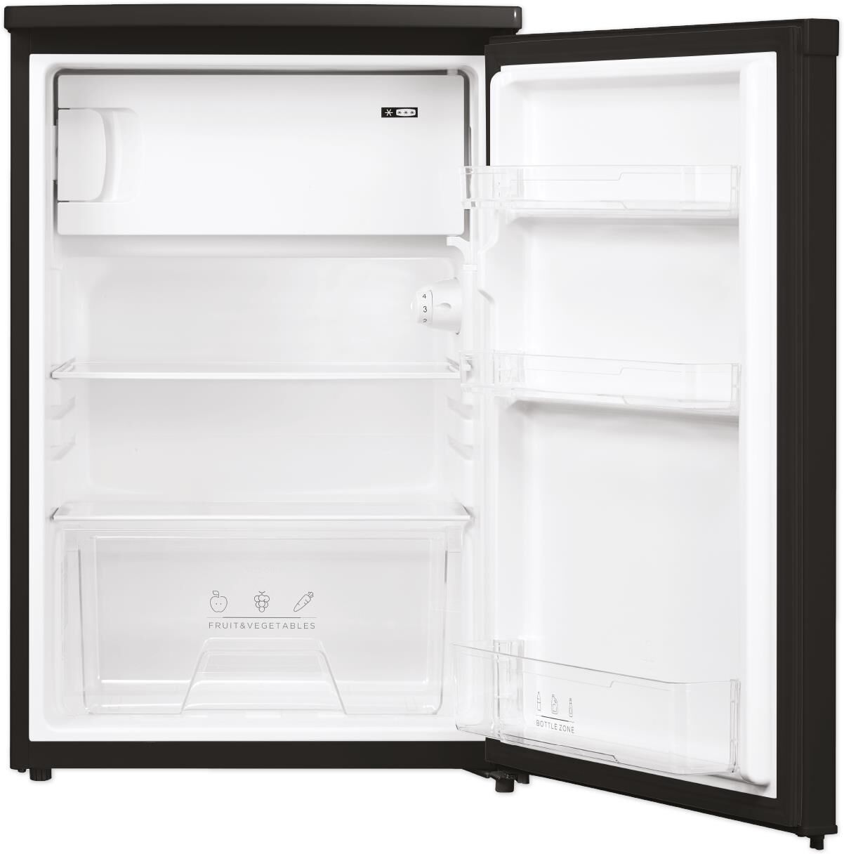 • Габариты, мм (ШxГxВ): 553x574x845 •Общий объем, л 113 •Объем морозильной камеры, л: 16 •Объем холодильной камеры, л: 97 •Класс энергоэффективности: A+ •Максимальный уровень шума, дБ: 39 •Комплектация: лоток для льда, лоток для яиц •Цвет- черный •Кли