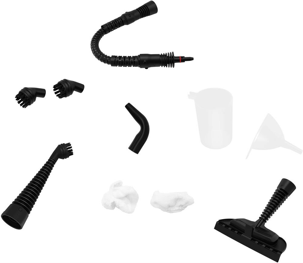 • Мощность: 900-1050 Вт • Объем резервуара для воды: 450 мл • Давление пара: 3,2 бар • Подача пара: 35 г/мин • Кнопка подачи пара • Фиксация кнопки подачи пара • Световая индикация работы • Насадка для плоских поверхностей • Скребок для стекла • Паровой шланг • Струйная насадка • Микрофибра для насадки для плоских поверхностей - 2 шт. • Круглая щетка - 2 шт. • Угловая насадка • Воронка • Мерная чашка • Длина шнура: 3 м