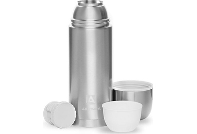 Термос компактного размера, с узким горлом, глухая пробка с термоизолятором, покрытие лак, дополнительная чаша