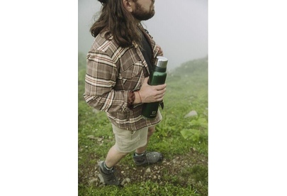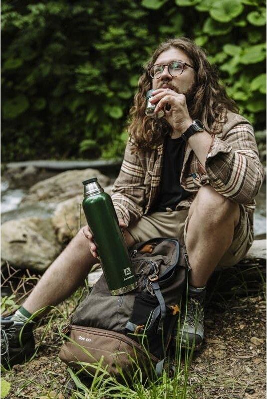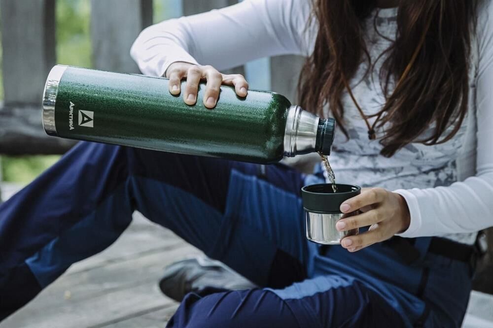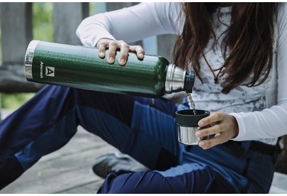 Термос с суперузким горлом,глухая пробка с термоизолятором, молотковое покрытие, дополнительная чаша