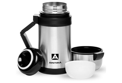 Термос универсальный с широким горлом, двойная пробка, складная ручка, дополнительная чаша, съемный ремешок