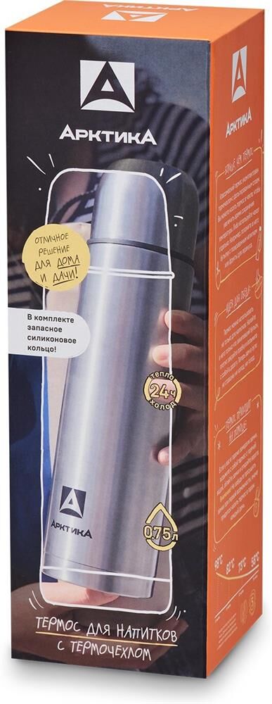 АРКТИКА 750 мл, 101-750А с чехлом 0.5 0.75 1 ОБЩЕЕ УДЕРЖАНИЕ (Ч) 24 ДИАМЕТР ГОРЛЫШКА (ММ) 50 ВЫСОТА (ММ) 300 ДИАМЕТР ДОНЫШКА (ММ) 80