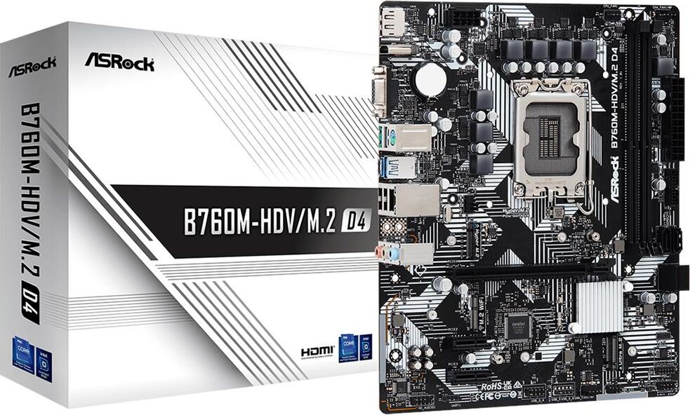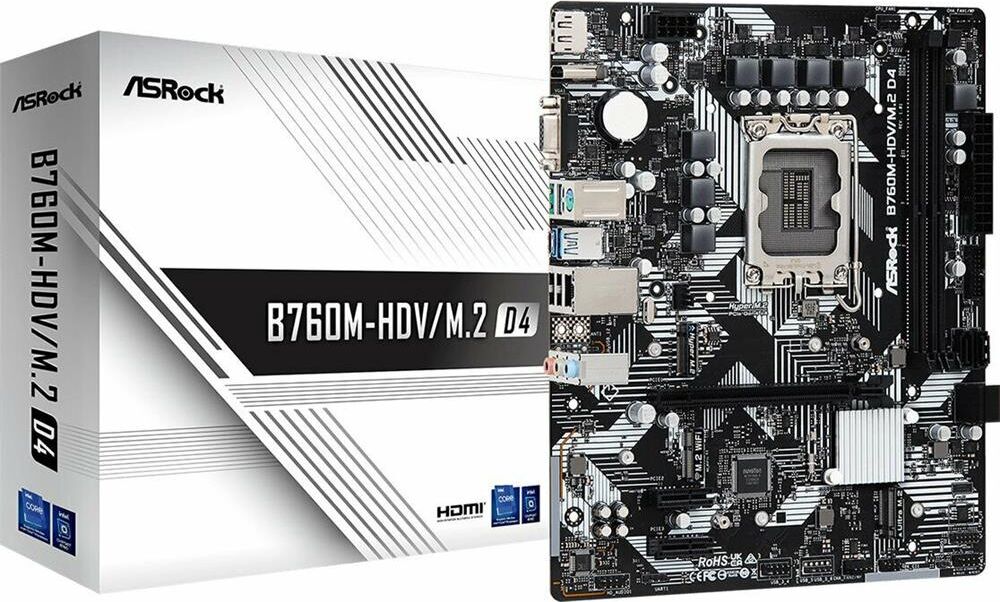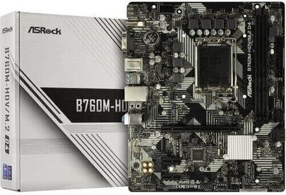 ASROCK Материнская плата B760M-HDV/M.2 D4 Soc-1700 Intel B760 2xDDR4 mATX AC`97 8ch(7.1) GbLAN RAID+