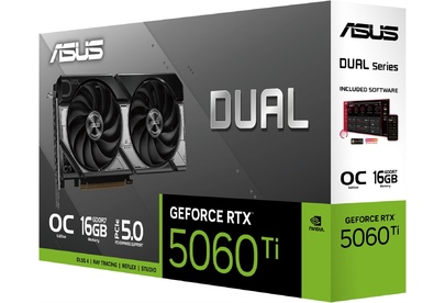 ASUS Видеокарта RTX5060Ti DUAL OC 16GB GDDR7 128bit 3xDP HDMI 2FAN RTL [DUAL-RTX5060TI-O16G]