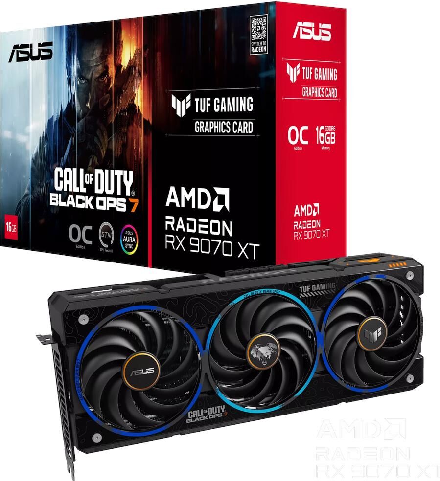 **Видеокарта ASUS RX9070XT TUF GAMING COD BO7 SPECIAL EDITION OC 16GB GDDR6 — мощь и стиль для настоящих геймеров!** Погрузитесь в мир игр с видеокартой ASUS RX9070XT TUF GAMING COD BO7 SPECIAL EDITION OC! Эта модель создана для тех, кто ценит высокую производительность и впечатляющее качество графики. **Почему стоит выбрать эту видеокарту?** * **Высокая производительность:** заводской разгон (Overclocking) и мощный графический процессор AMD Radeon RX 9070XT обеспечивают плавную работу даже в самых требовательных играх. * **Отличное качество изображения:** с максимальным разрешением 7680x4320 вы сможете насладиться каждой деталью игрового мира. * **Возможность подключения нескольких мониторов:** можно подключить до 4 мониторов — идеально для многозадачности и расширенного игрового пространства. * **Эффективное охлаждение:** 3 вентилятора обеспечивают надёжное охлаждение, что позволяет поддерживать стабильную работу видеокарты даже во время длительных игровых сессий. * **Удобство подключения:** 3 разъёма Displ