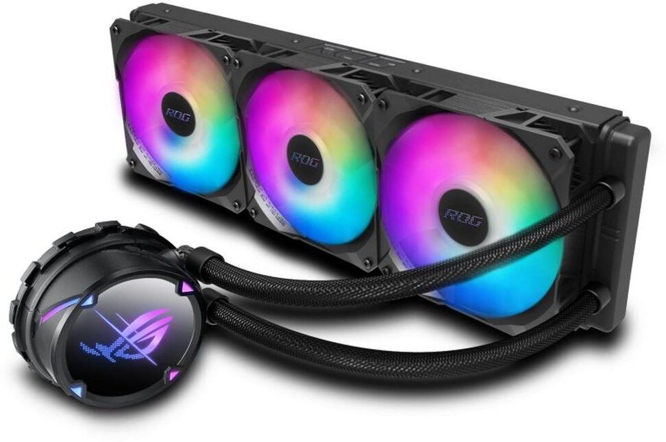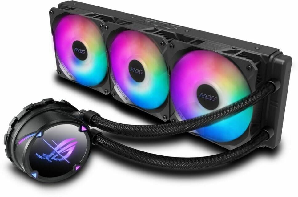 Система охлаждения ASUS ROG STRIX LC 360 RGB отличается высокой мощностью и станет отличным выбором для игровых и рабочих систем, основанных на производительных процессорах Intel и AMD с высоким тепловыделением. Основой данной модели служит медный водоблок и алюминиевый радиатор, соединенные между собой шлангами длиной 380 мм, что обеспечивает эффективный отвод тепла. Также система охлаждения оснащена 3 вентиляторами размером 120 мм, которые могут работать на скорости вплоть до 2500 об/мин.