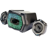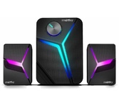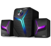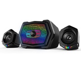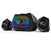 Яркое решение для звукового оформления комплекса ПК, также способное подключаться к источникам по Bluetooth. Для большего удобства выделен проводной пульт управления. Регулируемая RGB-подсветка.