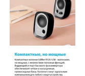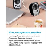 Акустическая система, выходная мощность (RMS), Вт - 6 (2 х3), частотный диапазон, Гц 100– 20 000, размеры динамиков, мм O 60, напряжение питания - USB/DC 5V, регулировка громкости, рзъем для подключения наушников и микрофона, материал корпуса - МДФ, размеры изделия, мм - 98х141х97.