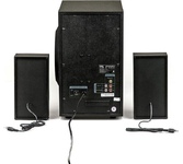 Мощность сабвуфера: 15. Суммарная звуковая мощность: 25. Основной цвет: черный. Акустический тип: 2.1. Материал корпуса колонок (фронт): пластик. Количество полос фронтальных колонок: широкополосные. Линейный вход (стерео): есть. Разъем для наушников: есть. Пульт ДУ: проводной. Материал корпуса сабвуфера: MDF. Тип электропитания: от сети. Размеры НЧ динамика (сабвуфер): 100. Выход фазоинвертора: на передней панели. Габариты упаковки (ед) ДхШхВ: 0.325x0.155x0.235. Вес упаковки (ед): 3. Гарантия: 12 мес.. Частотный диапазон: 48 Гц - 20 КГц. Размер фронтальных колонок (ШхВхГ): 81 х 146 х 89 мм. Размер сабвуфера (ШхВхГ): 220 х 228 х 150 мм. Мощность фронтальных колонок: 2 х 5 Вт. Тип: 2.1. Суммарная звуковая мощность: 25 Вт. Питание: от сети. Цвет: черный