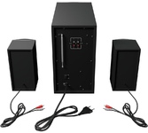 Колонка (пара). Выходная мощность: 21Вт+21Вт. 2 динамика в каждой колонке. Частотная характеристика: 55Гц-20кГц. Входы: линейный 2 шт. В комплекте: пульт ДУ, колоночный кабель, кабель RCA-RCA, кабель 3.5мм-RCA, инструкция пользователя.