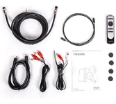 Колонка (пара). Выходная мощность (общая): 120 Вт. 2 динамика в каждой колонке. Частотная характеристика: 50 Гц-20кГц. Соотношение сигнал/шум: 85 дБ. Входы: RCA, Bluetooth, оптический. В комплекте: пульт ДУ, кабель 3.5мм-2RCA, 2RCA-2RCA, волоконно-оптический входной кабель, колоночный кабель, инструкция пользователя.