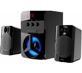 Акустическая система 2.1, BLUETOOTH /USB/SD/AUX/FM/LED, Максимальная мощность: 120Вт, Суммарная мощность (RMS) 30Вт (20Вт+5Вт x 2), Размеры динамиков: 4"+3"x2, Амплитудно-частотная характеристика: 60Гц-20КГц, Отношение сигнал\шум: 70Дб, Дистанционный пульт управления, Питание: 110В~240В 50Гц, Размеры - В220*Ш140*Г264 мм(сабвуфер), В150*Ш91*Г84 мм (сателлиты), Вес:2.1Кг