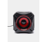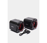 Акустика 2.0, мощность 2х5 Вт (RMS), диапазон воспроизводимых частот 90–20000 Гц, питание USB, материал корпуса - пластик, аудиовход (3,5мм), размеры - 115х110х105 мм.