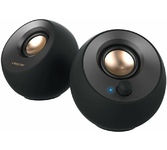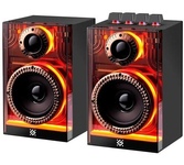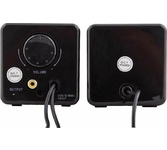 Активная двухполосная акустическая система в деревянном корпусе. Для удобства использования на боковой панели присутствует регулятор громкости и тембра низких и высоких частот, индикатор питания. Защитные сетки передней панели можно легко снять, в зависимости от эстетических предпочтений пользователя.