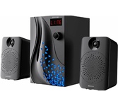 Акустическая система, BLUETOOTH /USB/AUX/FM/LED, Максимальная мощность: 120Вт Суммарная мощность (RMS) 30Вт (20Вт+5Вт x2), Размеры динамиков: 4"+3"x2, Амплитудно-частотная характеристика: 60Гц-20КГц, Отношение сигнал\шум: 70Дб, Дистанционный пульт управления, Питание: 110В~240В 50 Гц, Размеры - В223*Ш140*Г264 мм(сабвуфер), В150xШ91xГ84 мм (сателлиты), Вес: 2.15Кг
