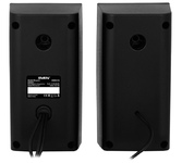 Тип: полочная акустическая система Звуковая схема: стерео, 2.0 Акустическое оформление: фазоинверторного типа Расположение порта фазоинвертора: тыл Суммарная выходная мощность (RMS): 10 Вт Мощность сателлитов (RMS): 2 х 5 Вт Диапазон частот: 80–20000 Гц Размер динамиков: 2 х 3 " Разъем для наушников: 3.5 мм jack Вход для микрофона: 3.5 мм jack Материал корпуса: МДФ Регуляторы: общая громкость Питание: от USB, 5 В Длина кабеля питания: 0.6 м Длина AUX-кабеля: 0.6 м Длина кабеля между сателлитами: 0.8 м Цвет: чёрный Гарантийный срок: 6 месяцев ROHS / CE: Да