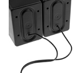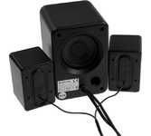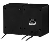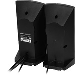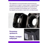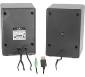 Акустическая система, суммарная звуковая мощность 6 Вт, частотный диапазон150Гц-20КГц, отношение сигнал/шум 60 дБ, количество фронтальных колонок - 2, электропитание USB, габаритные размеры - 85x125x80 мм.