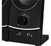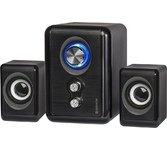 Акустическая система, суммарная выходная мощность (RMS) 11 Вт, диапазон частот 40–18000 Гц, питание - 230 В / 50 Гц, светодиодная подсветка регулятора громкости, материал корпуса и сателитов - пластик.