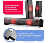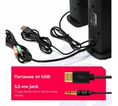 Акустическая система, суммарная выходная мощность (RMS) 6 Вт, светодиодная подсветка, мощность сателлитов (RMS) 2х3 Вт, размер динамиков сателлитов 2х2,5", диапазон частот 270–200000 Гц, входная чувствительность - 820мВ ±50 мВ, разъем для наушников, вход для микрофона, тип интерфейса - 3,5-мм джек, питание от USB, 5 В.