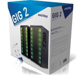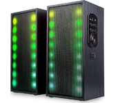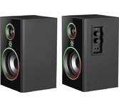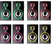Геймерские компьютерные колонки со светодиодной подсветкой и с функцией Bluetooth 5.3. Для удобства пользователя панель управления вынесена на проводной пульт, в котором расположились регулятор громкости, разъемы для подключения гарнитуры, кнопка управления режимами подсветки (9 режимов), переключения режимов AUX/Bluetooth и включения/ выключения питания.
