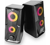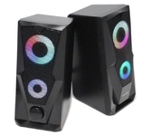 Колонки компьютерные Redragon Stentor 6 Вт / Акустическая система 2.0 , черный: Колонки для компьютера Redragon Stentor мощностью 6 Вт с питанием от USB - это стильная акустическая система 2.0 со светодиодной подсветкой динамиков и регулятора громкости. Вам не придется переключаться на управление плеером, чтобы увеличить или уменьшить звук. Удобный выключатель питания, достойный звук и актуальный игровой дизайн.