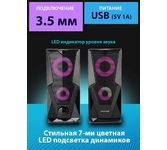 Акустическая система, суммарная выходная мощность (RMS) 6 Вт, мощность сателлитов (RMS) 2х3 Вт, размер динамиков сателлитов 2х2,5", диапазон частот 270–200000 Гц, разъем для наушников, вход для микрофона, тип интерфейса 3,5-мм джек, питание от USB, 5 В.