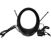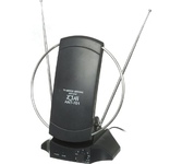 Антенна комнатная, диапазоны принимаемых частот: FM 88-108 МГц VHF 40-230 МГц; UHF 470-862 МГц; коэффициент усиления: 0-36 дБ (с регулировкой).