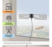 Активная комнатная антенна, для цифровых телевизионных сигналов DVB-T, DVB-T2, принимаемый диапазон: VHF, UHF, Коэффициент усиления до 30дБ, источник питания - коаксиальный кабель или адаптер питания