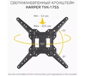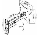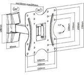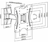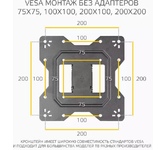 Для использования с телевизорами диагональю 37"-86", весом до 45кг. Расстояние телевизора от стены 53мм. VESA 75x75, 100x100, 100x150, 150x100, 100x200, 200x100, 150x150, 200x200, 200x300, 300x200, 200x400, 400x200, 300x300, 300x400, 400x300, 600x200, 500x300, 400x400, 600x300, 500x400, 600x400. Возможен подъем на 5 и наклон на 15 градусов.