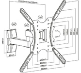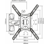 Наклонно-поворотный кронштейн. Для использования с телевизорами 13"-55" весом до 25кг. Расстояние телевизора от стены 67~367мм. VESA75x75,100x100,100x200,200x100,200x200,300x200,400x200,300x300,400x300,400x400. Возможен наклон до 15 градусов и подъем до 5 градусов. Поворот влево и вправо на 90 градусов.