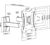 Наклонно-поворотный кронштейн со свободным наклоном. Открытая конструкция обеспечивает повышенную вентиляцию и облегчает доступ к проводам. Для использования с телевизорами 23"-42" весом до 20кг. Расстояние телевизора от стены 56-300мм. VESA 100x100,200x100,200x200. Возможен наклон до 10 градусов и подъем до 3 градусов. Поворот влево и вправо на 90 градусов .